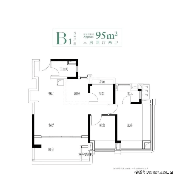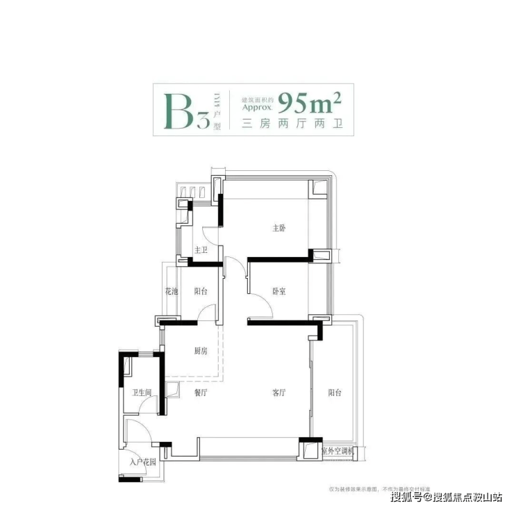建面95平三房,该户型有四个不同的户型,都是竖厅和横厅设计,还有南北对流的户型,主要分布于2、3栋,靠近里面没有什么噪音影响。