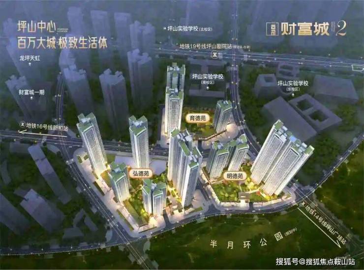 【财富城二期】是整个坪山最核心的地段,汇聚了高铁、三条地铁、两所学校、一个公园和六馆一城等全方位的生活、市政配套,当之无愧是坪山最适合居住的片区。