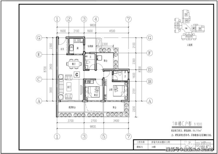 1#号楼C户型86.91㎡(两房两厅两卫)