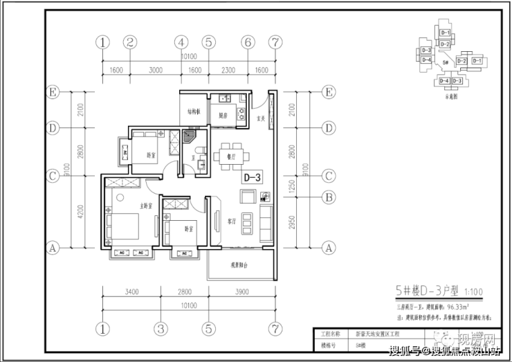 5#号楼D3户型96.33㎡(三房两厅一卫)