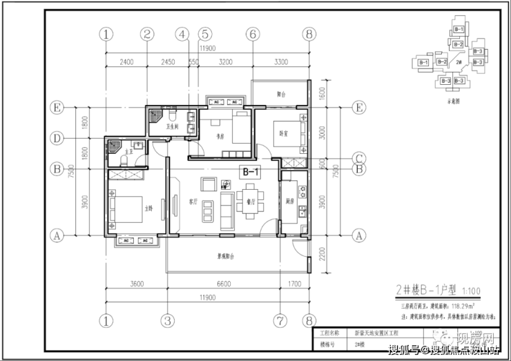 2#号楼B1户型118.29㎡(三房两厅两卫)