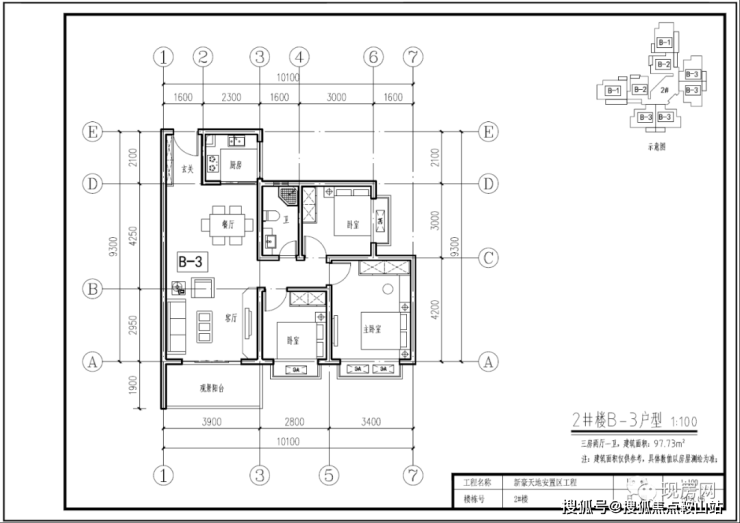 2#号楼B3户型97.93㎡(三房两厅一卫)