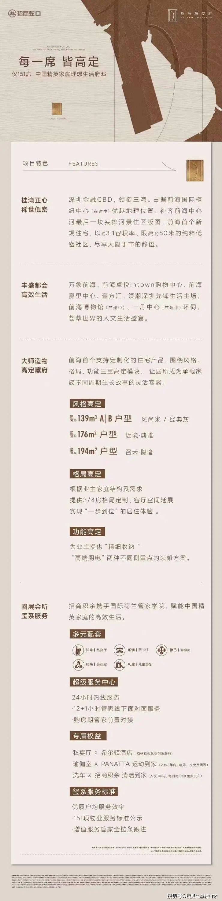 推出2栋、3栋约108套约139-176-194㎡四房以上户型,预计2027年底精装交付。这是前海首个支持定制化的住宅产品,风格/格局/功能都可以定制。