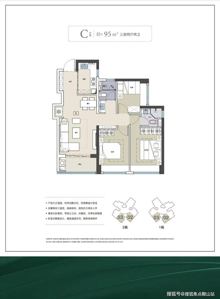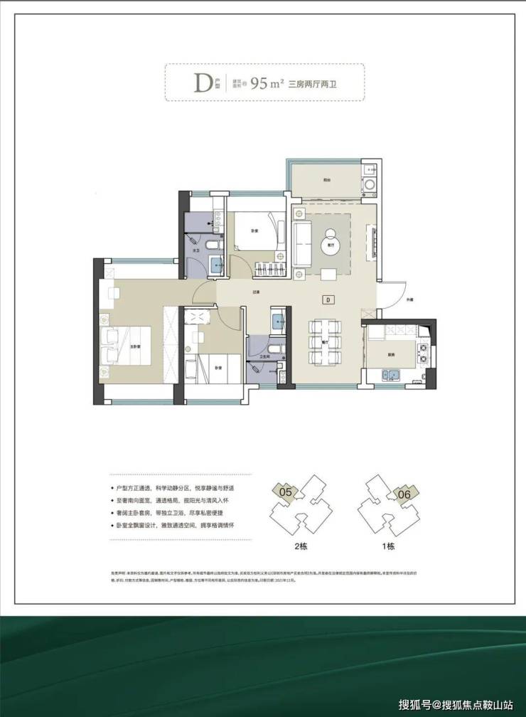 ✅ 95㎡三房两卫(折后617万起):性价比之王户型,大三房两卫设计,相比79㎡户型多出一个卫生间,其他功能区也更加宽敞。户型方正通透,动静分区清晰,主卧带独立卫浴,保障居住私密性;阔绰阳台连接客厅,采光通风俱佳,适配三口之家或二胎家庭居住。