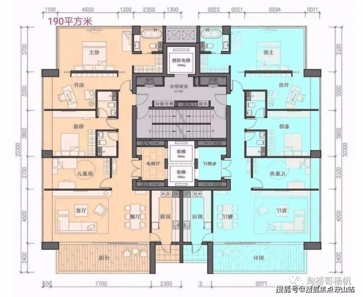 左边最高,43层,3梯两户,1栋。全部是190户型,四房,72%使用率。190的四房,非常舒适的尺度了。