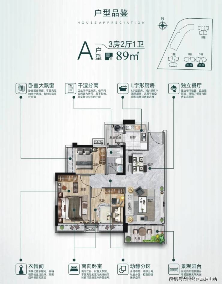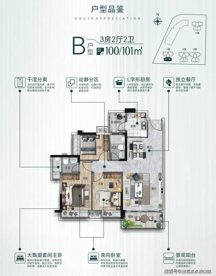 【 楼栋结构 】共5栋,1/2/3/5栋住宅,21层;4栋为商业