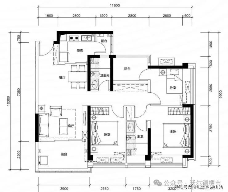 ✅ B06 户型:约109㎡ 阔绰四房两厅两卫: