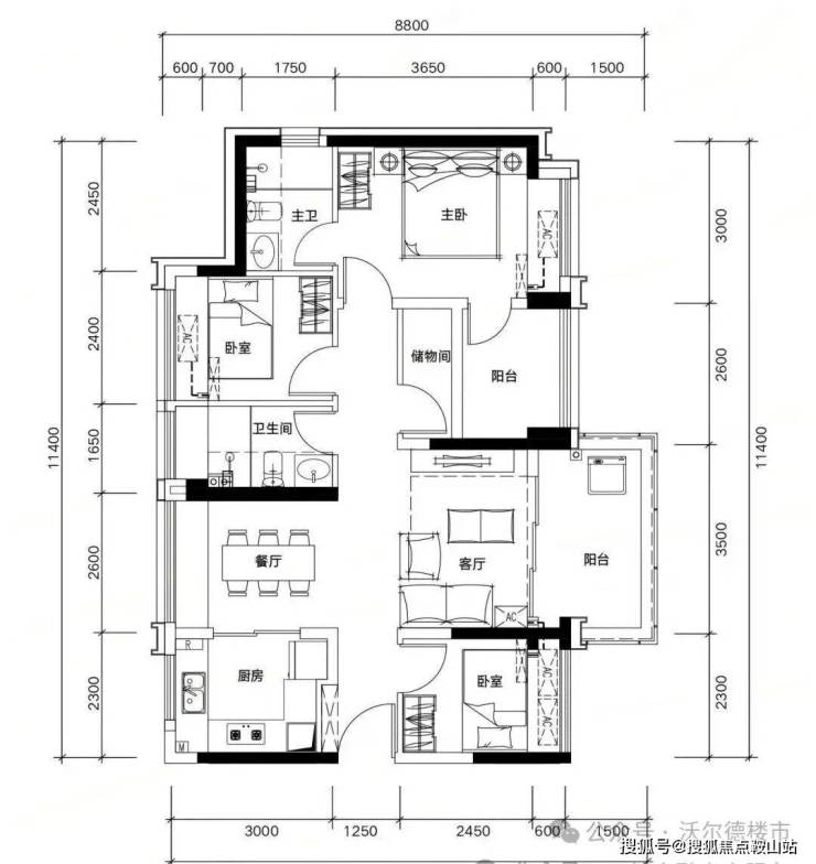 89㎡四房两厅两卫,同等面积多一间房,二孩家庭也能三代同堂。