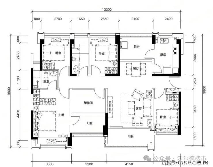✅ E03户型:约135㎡ 稀缺五房两厅两卫: