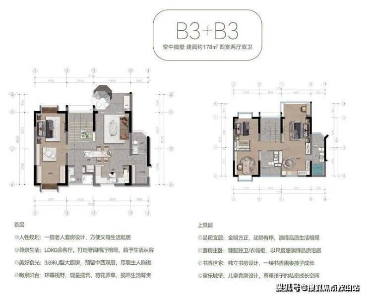 具体来说,A-2户型(建面约60㎡)以独立入户花园和客餐厨一体化设计,打造宜居范本;B-2户型(建面约84㎡)则通过通透宽厅和观景阳台,让阳光清风入室做伴;B3奢阔大平层(建面约89㎡)以高得房率和阔绰宽境,提升居住品质;A-2+B-2大平层(建面约142㎡)则通过豪宅质感和私密有序的设计,满足家庭成员的多元需求;而B-3+B-3空中微墅(建面约178㎡)更是以人性规划和品质宜居的设计理念,打造出一处尊贵的居住空间。
