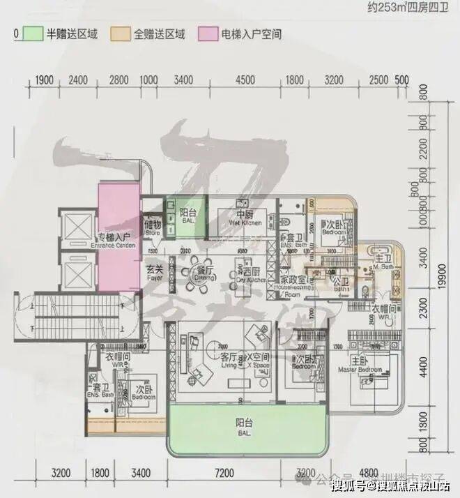 253-332㎡四房四卫:顶豪配置,3套间+西厨,主要在2、3、5栋的楼王位置。南向面宽能达到18-20米,采光通风极佳,专梯入户,主卧带超大衣帽间和双台盆+浴缸,完全是塔尖人群的配置。332㎡的户型还带家政套间,细节拉满,预计总价会超过4500万