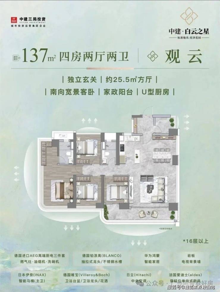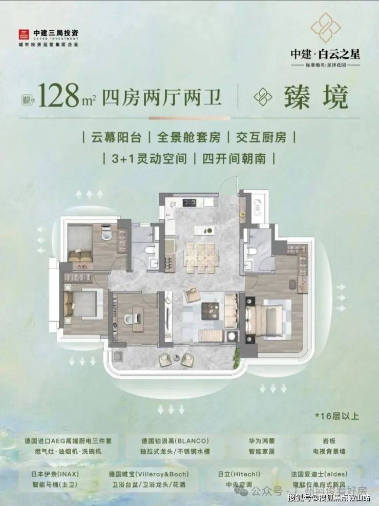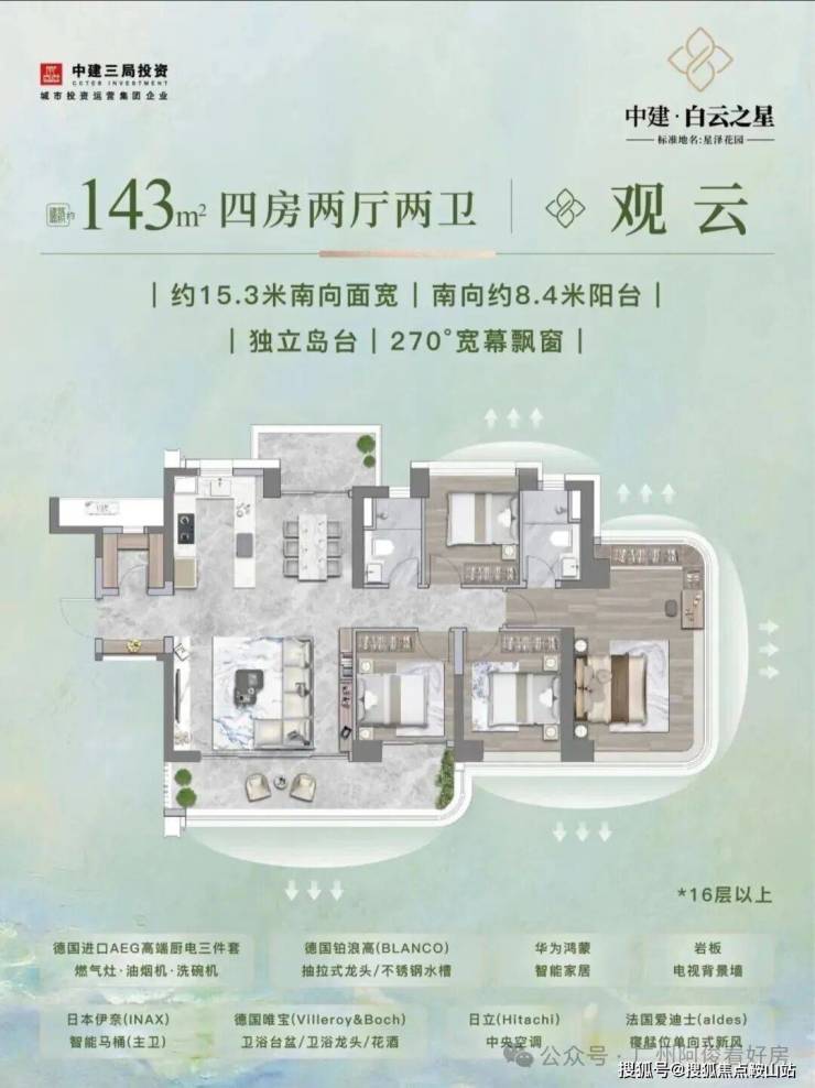 户型设计:主推128-226㎡四房,3.1-3.3米层高,全屋华为鸿蒙智能系统,配备AI防跌倒监测、远程控窗等科技。