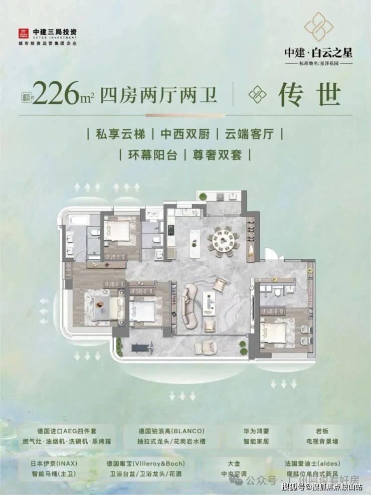精装标准:国际一线品牌(博世、西门子),法国HQE绿建三星认证,得房率超100%。