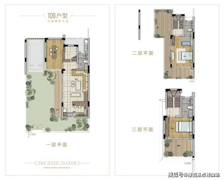 拥有3层空间,配备3间套间,每一层均可享受超大户外空间相连,将室外绿意,最大化引入室内。