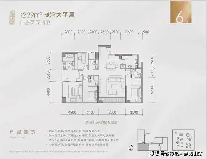 6栋望江公寓,总高43层,15、30楼是避难层,24年6月交,中区(16~29层:206、232、261㎡,5梯4户);低区(3~14层:98、146、143、151、161 ㎡,3梯7户,在售10、11楼)