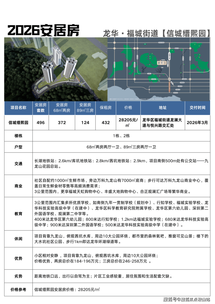 作为龙华区首个对库外家庭开放申购的安居房项目,项目是非超高层、还是现房。共提供331套精装房源,配售均价约为28205元/平方米。