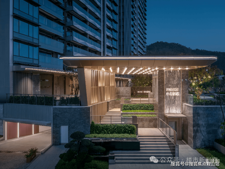 🔘归家礼序:三重尊奢归家,主入口前设置迎宾广场,台地式建筑拾级而上,入社区后景致相依,酒店式的归家奢华大堂,营造归家尊崇仪式感。