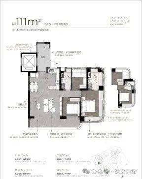 湾啟紫荆位于前海妈湾听海大道,占地约1.5万㎡,住宅建面约6.6万㎡,容积率5.14,共有三栋住宅组成,层高36-37F,共485户,车位595个,车位比1.1.2,4梯5户,主推约96㎡稀缺三房、111㎡3+1房、122㎡四房、142㎡四房。户型设计了大客厅、宽景阳台、阔景飘窗等,拥有山海河多重景观资源,计划品质精装交付。户型采用建筑新规设计,户户大阳台,4梯5户,分布式电梯设计,独立电梯厅。