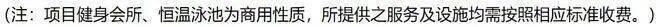 【高端会所 尊崇享受】引入约1500㎡融合健身、休闲、社交等功能的高端商业健身会所,配置高标准室内恒温泳池,缔造城芯尊崇生活。