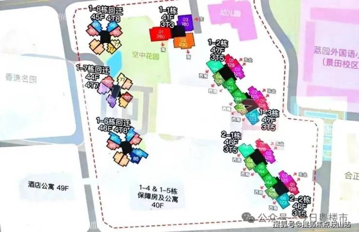 项目住宅产品建设用地面积约 4.1 万㎡,计容建面约 29万㎡,容积率 7.03,规划机动停车 2681 辆。项目由5栋住宅(1#1、1#2、1#3,2#2、2#3)、1栋(1#4)保障房、3栋(1#6、1#7、1#8)回迁房组成、1栋(1#5)公寓组成。