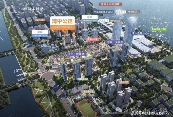 【项 目 配 套】:万科湾中新城-约175万方国际滨海地标大城,项目规划约70%的商办体量,涵盖八大业态,打造成政商文旅住等世界级湾区地标综合体。