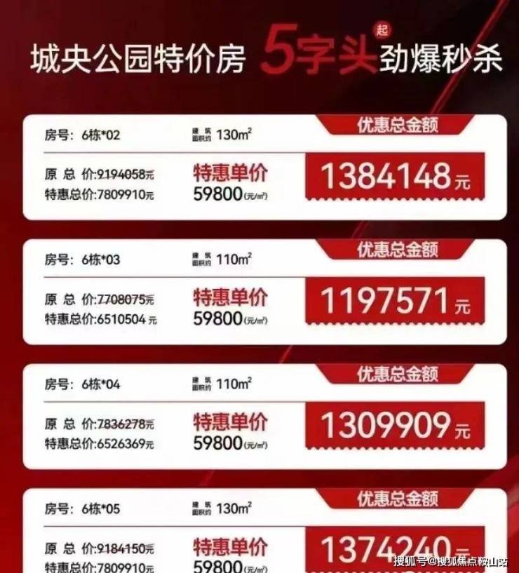 其中,1号楼:39层高,2梯4户,毛坯,明年7月交楼,产品包括南向95㎡三房、南北对流131㎡4房,单价约6.4万/㎡,总价分别608、838万。