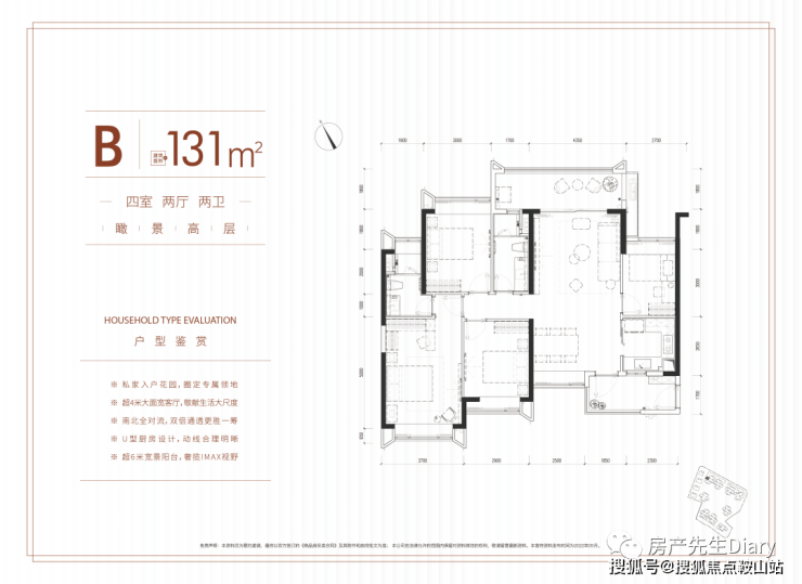 131平B户型,主阳台朝北,但两卧室朝南、两卧室朝北。但是,望海珠湿地公园,景观相对比较好。