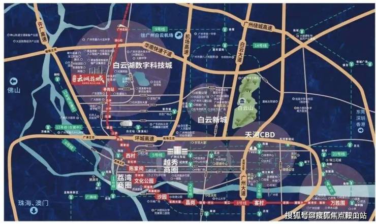 在地缘上,白云湖数字科技城位于中心五区,临近中心城区,与珠江新城直线距离仅15公里,兼得新城发展,又不远离市中心,衔接资源。