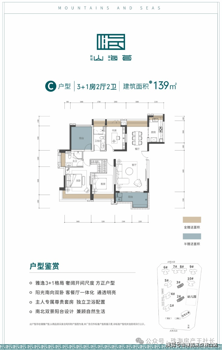 约139㎡,3+1房2厅2卫,4.5米客厅开间,南北通透,主卧套房,带衣帽间、卫生间,主卧开间3.6米,带270度转角飘窗