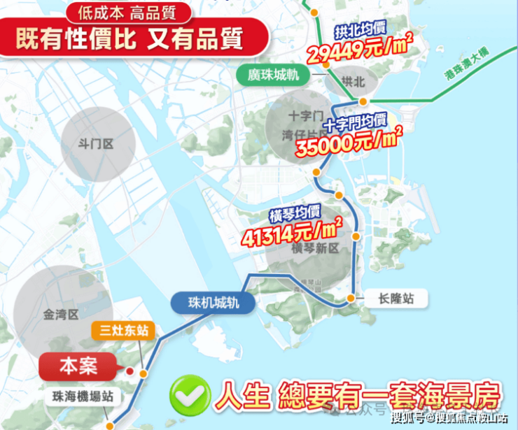 自驾:项目位于金湾区航城路,走洪鹤大桥约20分钟到横琴,30分钟到香洲(明珠站),通勤主城区算方便