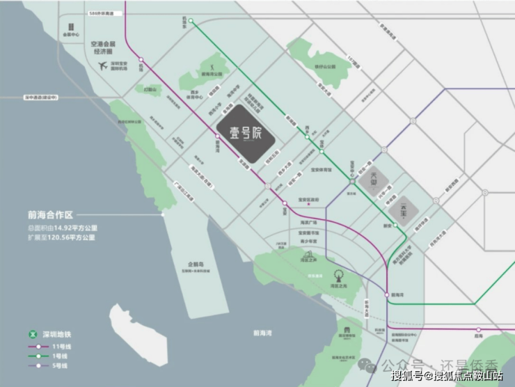深圳前海,世界级金融中心。项目所处的西乡碧海片区,定位为现代化海滨城区和深圳西部 CAZ 中央活力区,将打造“山—水—海”为主题的生态宜居的核心居住区。直线距离约 3 公里的大铲湾企鹅岛,规划打造“互联网+未来科技城”核心新区。