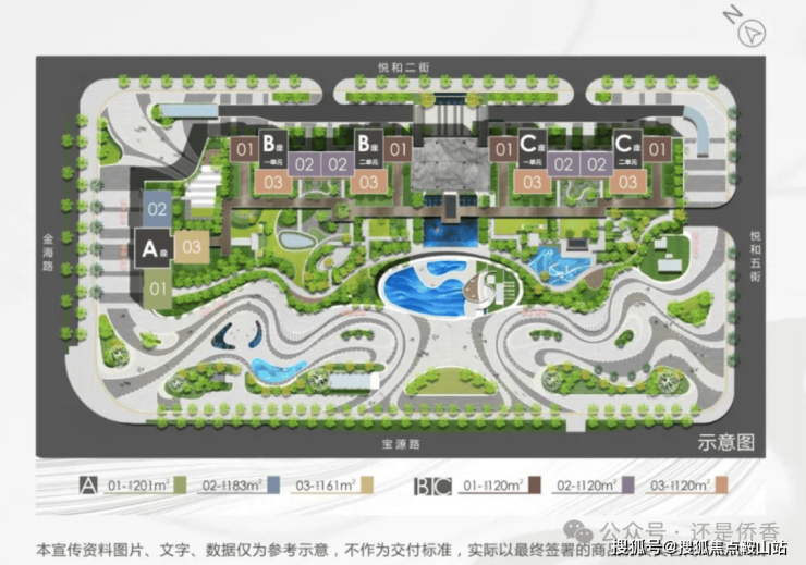 项目邀请设计大师米歇尔担纲建筑设计总顾问,以现代风格为主;项目建筑排布采用半围合式布局,强调建筑围绕中心环境而设计,从而让景观资源最大化。