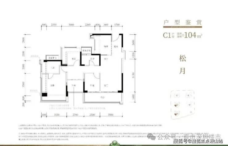 104㎡的4房2厅2卫,折后总价517-601万/套,单价约5-5.81万/㎡。