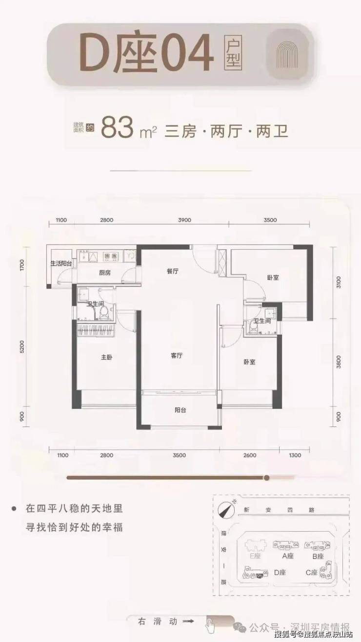 梯户比:A-C座2梯4户,D座2梯5户