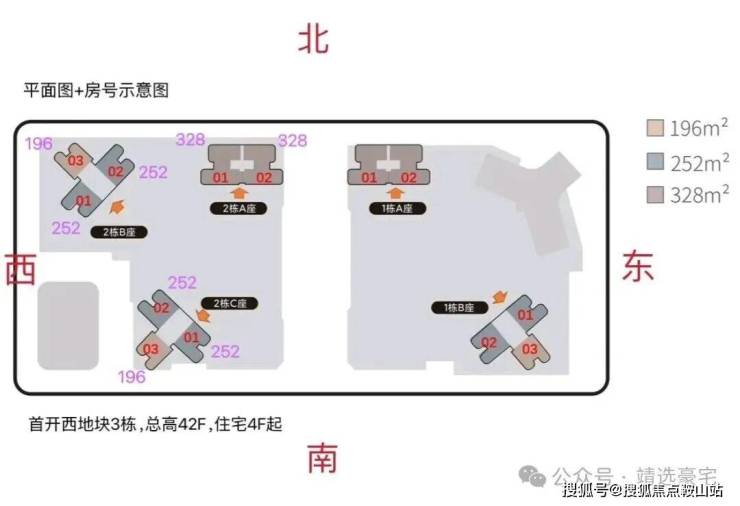 面积段:主力户型为196㎡、252㎡、328㎡大平层,少量400-600㎡顶层复式。