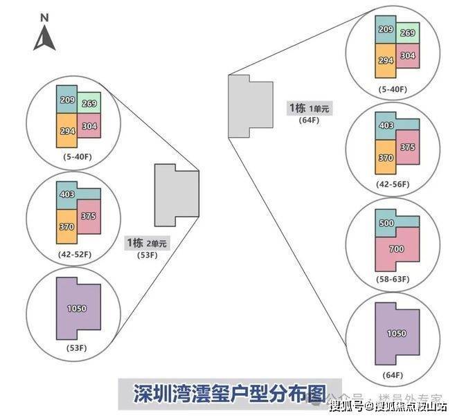 项目户型经过精心规划,低区(5F起,150米以内)为约209-304平方米四房以上大户型;高区(42F起,150-200米)为约370-375-403平方米4+1房五卫+家庭厅+家政套间;超高区(58F起,200米以上)为约500-700平方米顶级大平层顶楼1050平方米的Penthouse,或成深圳顶级大平层新标杆