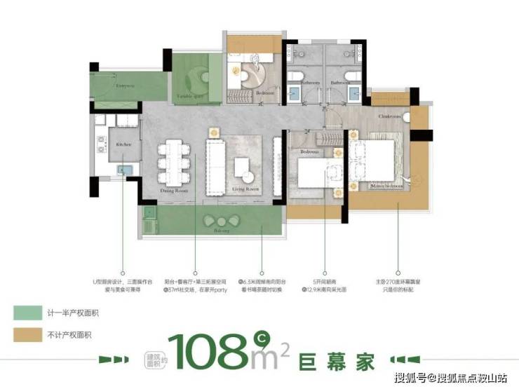●阳台+餐客厅+第三拓展空间,在家就能开party