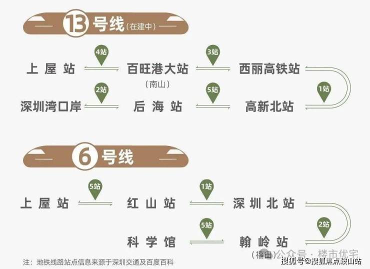 13号线据深圳交通局官网称将在2025年年底开通,该线路也是深圳3条快线之一,号称“深圳科技核心大动脉”,从南到北,串联深圳湾总部基地、后海中心、南山科技园、西丽高铁枢纽、留仙洞总部基地、白芒科研机构、宝安石岩科创城等多个重要片区。沿线华为、中国电子、腾讯、阿里等500强汇集,大批高新人才聚集,形成科创阵地,势必引领片区经济崛起。全程时速120公里,4站到南山百旺港大站,7站到南山西丽高铁站,8站到高新北。