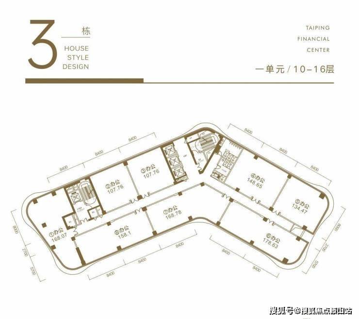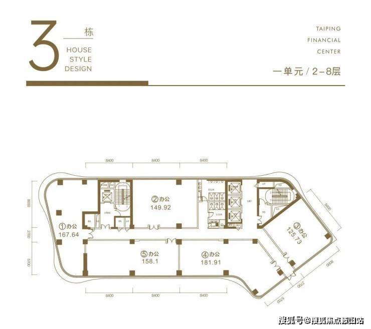 3# 楼:高度 99.8 米,共 26 层,8 部电梯,面积约 5.85 万平,层高 3.6 米,为新兴产业成长型企业办公区域。