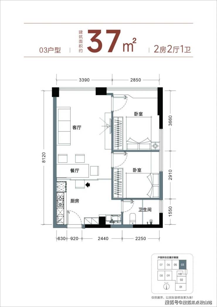 主力为37㎡两房,实际室内实用面积54-63㎡,实际使用率达145%-170%