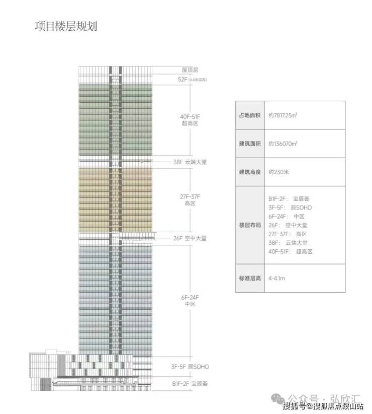 华侨城宝辰项目总高52层,其中6层起售,为购房者提供了多样化的选择空间。特别值得一提的是,11层和39层被设计为避难层,充分考虑了建筑的安全性能。而25-26层则被打造成空中会所,为业主提供了一处休闲娱乐、放松身心的理想场所。此外,38层作为空中大堂,不仅提升了项目的整体品质感,更为业主带来了尊贵与便捷的出入体验。