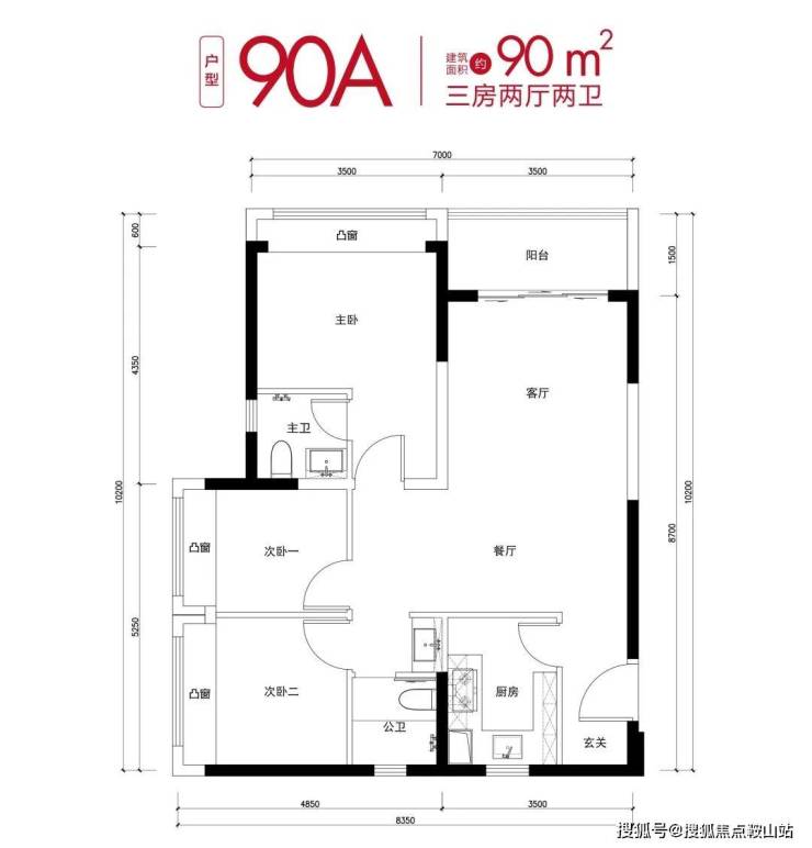 💎户型:建面约70㎡两房、建面约90㎡三房两卫