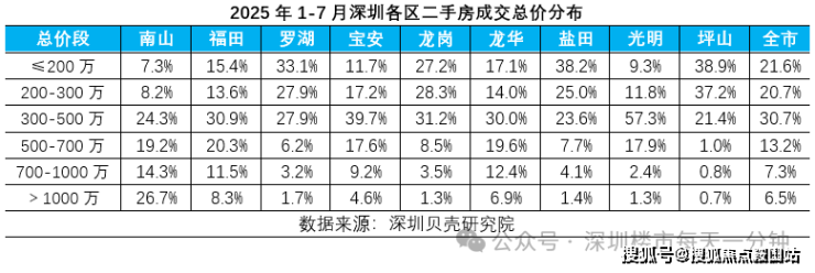 据深圳贝壳研究院数据显示,今年1-7月4万元以下成交占比达到42%,居各单价段之首。