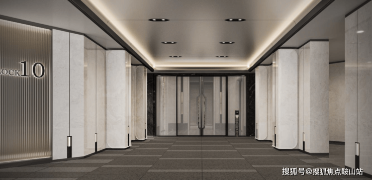 车马厅以对称柱体造型墙面、对称天花、地面作为切入点。弧形金属吊顶与黑色窄金属收边的结合,增强了空间的层次感,凸显设计的精致与细腻。