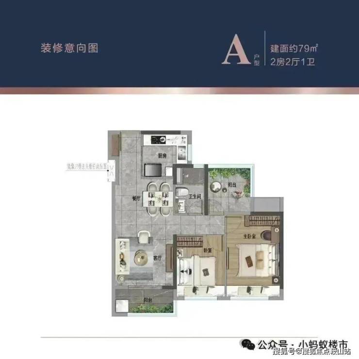 · 79㎡ 2+1房两厅一卫:三开间朝南,空间利用率高,适合刚需购房者