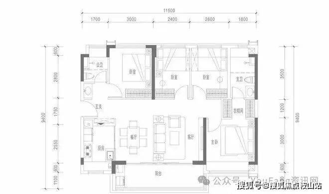 约114㎡四房两厅两卫