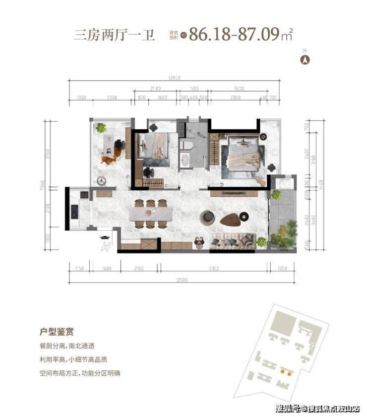 餐厨分离,南北通透2⃣利用率高,小细节高品质3⃣空间布局方正,功能分区明确