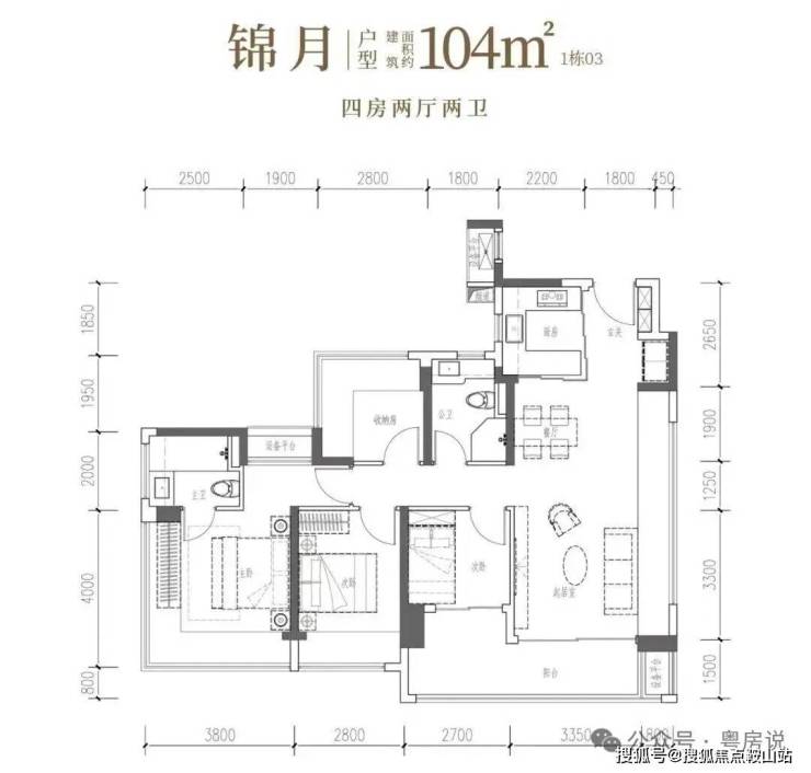 以全明格局联动LDKB一体化方厅与创新S墙巧思,更融入270°环幕主卧,将生活奢享提升至全新境界。• 锦月·建面约104㎡4房2厅2卫:南向四开间,6米阳台引景入室,自此生活融于风景
