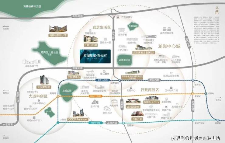 本项目距离16号线回龙铺站直线距离约2公里,16号线工程自大运站至坪山田心站,在大运站可以接驳14号线,约30分钟到达岗厦北。