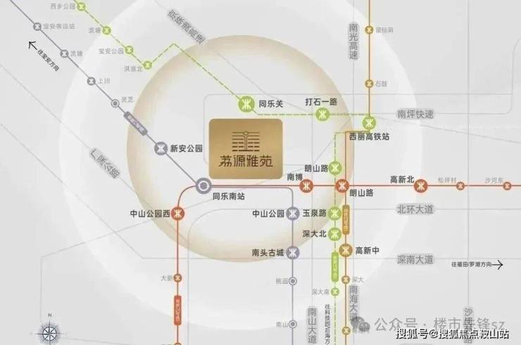 同乐公馆,位于深圳市南山区南头街道同乐片区中山园路东侧,地处南山与宝安交界处,紧邻地铁12号线(在建)同乐南站,步行距离约500米,项目坐拥南山核心区位,毗邻科技园、前海自贸区及留仙洞总部基地,5站可达高新园,辐射粤港澳大湾区核心产业带,具备承接高端人才居住需求的潜力。